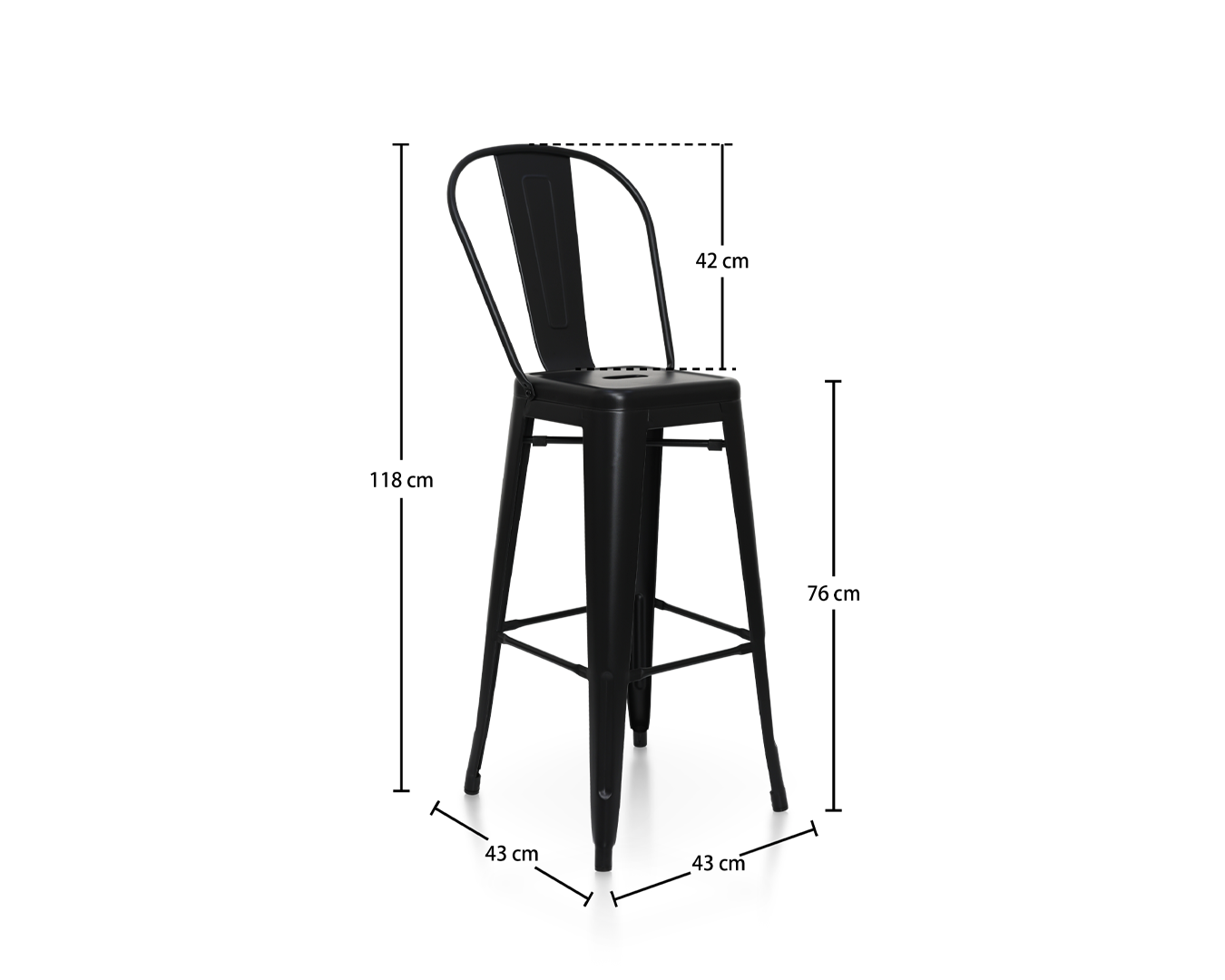 Black Metal Barstool med ryggstøtte