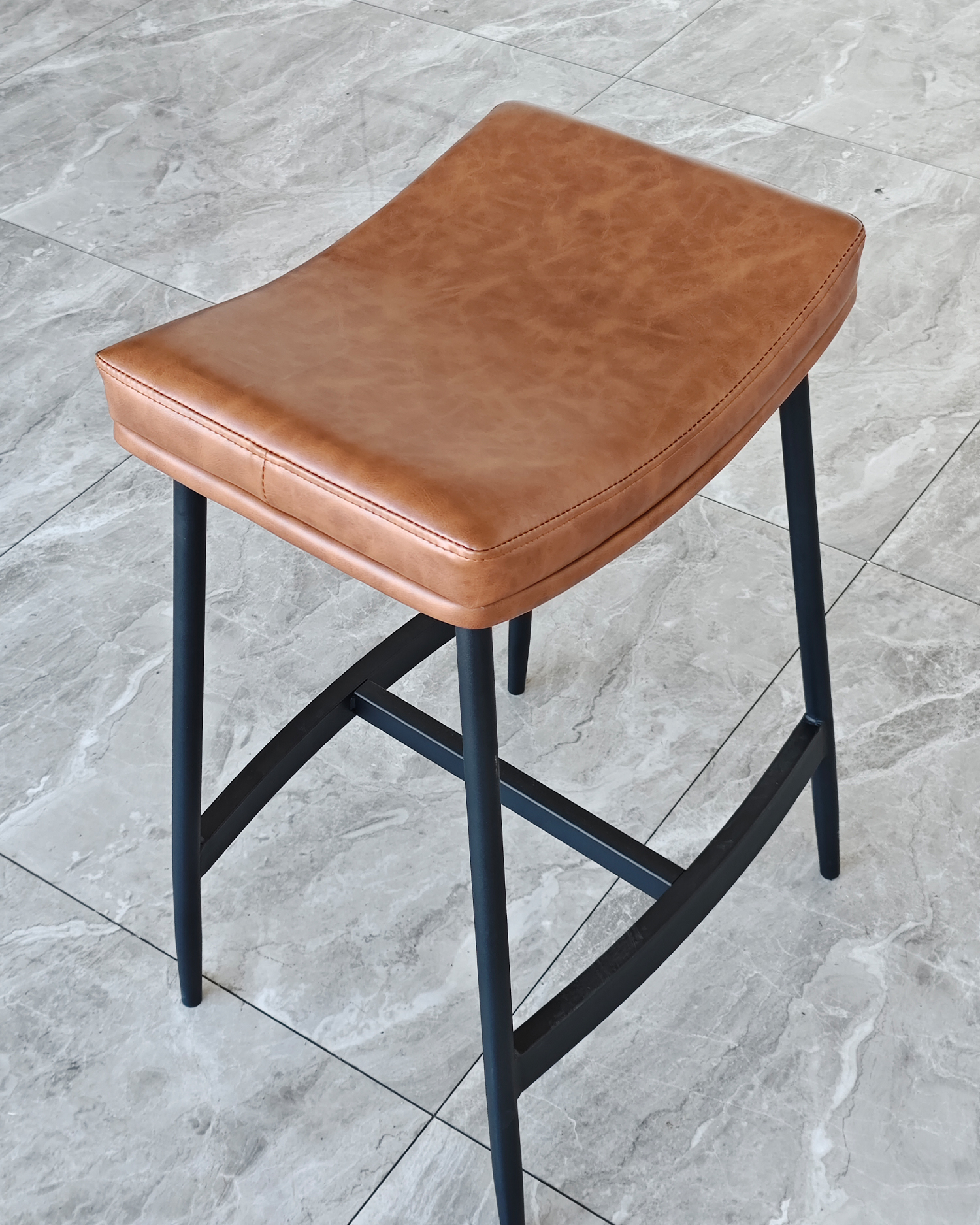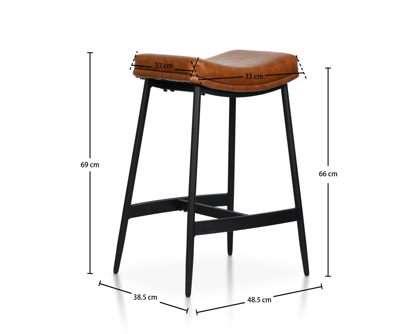 • Denne avføringen er forankret i industrielle elegante og tidløse skinncraft, og kanaliserer energien til vintage barer og moderne loft. Det sadelformede setet fremkaller komforten til en godt slitt lenestol i skinn.