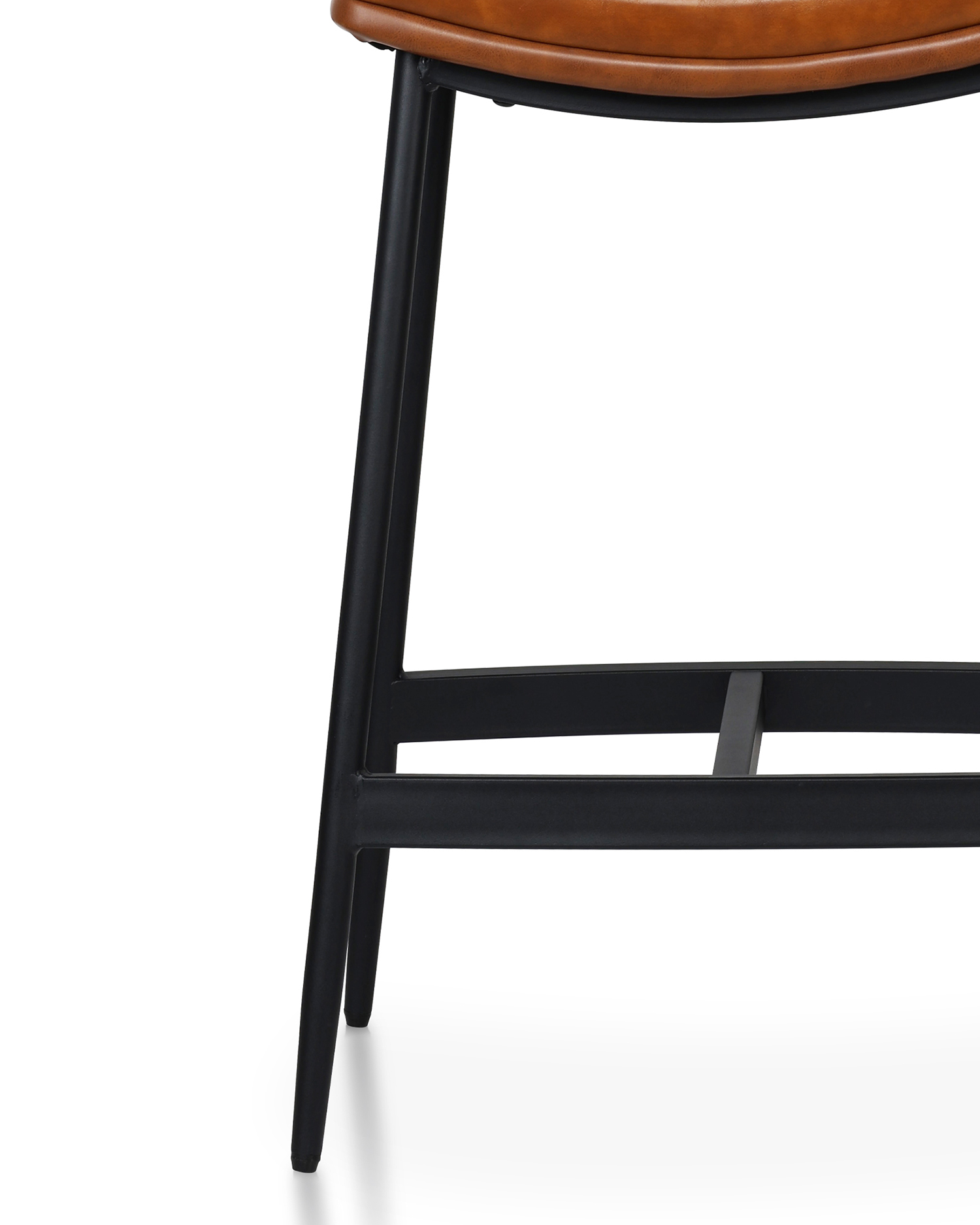 • Puten er polstret i rik solbrun faux skinn, og er både myk og støttende. En pulverbelagt black metal-ramme gir kontrast og stabilitet, med en praktisk fotstøtte for setekomfort hele dagen.