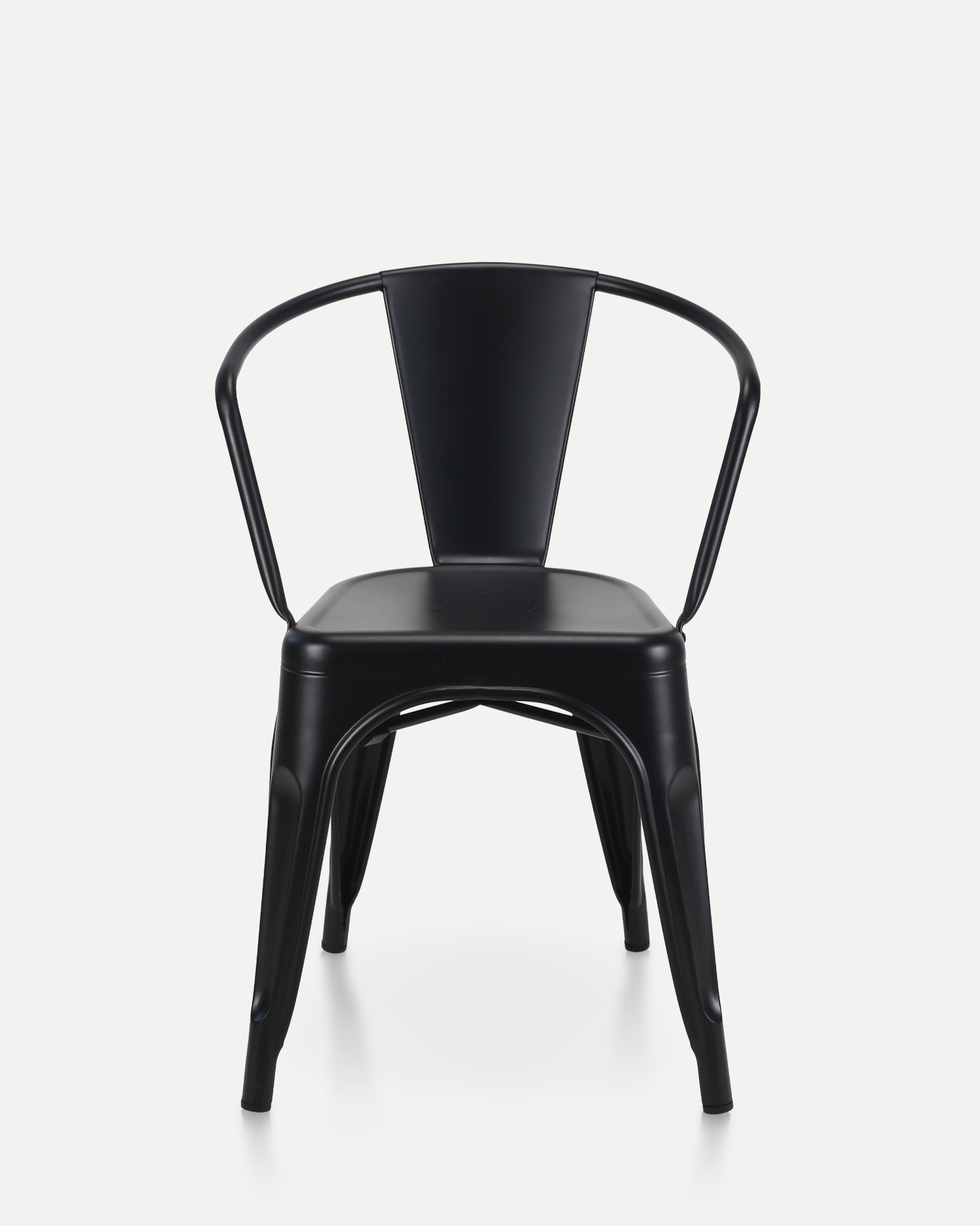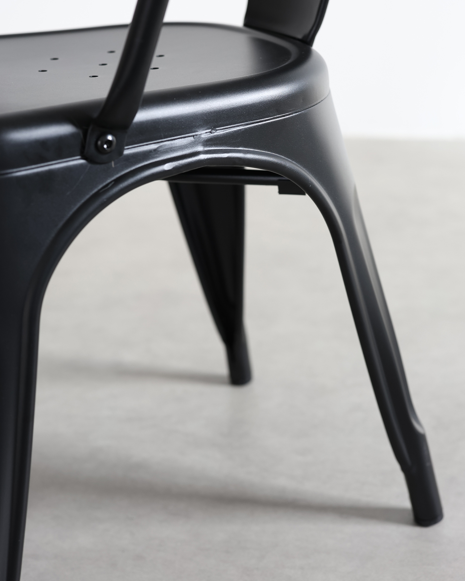 • Denne stolen er et mesterverk av industriell design, laget av jern av høy kvalitet og ferdig i en elegant svart farge som utstråler eleganse. Oppmerksomheten på detaljer i konstruksjonen er tydelig i alle aspekter, fra den nøyaktige sveisingen til de glatte konturene av rammen.