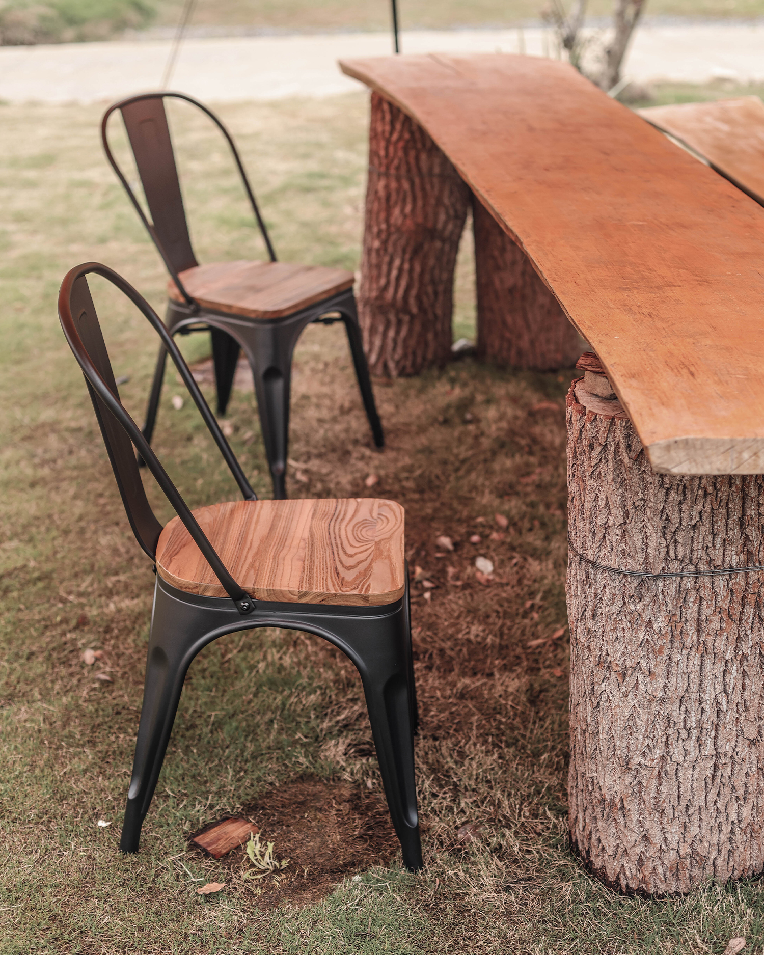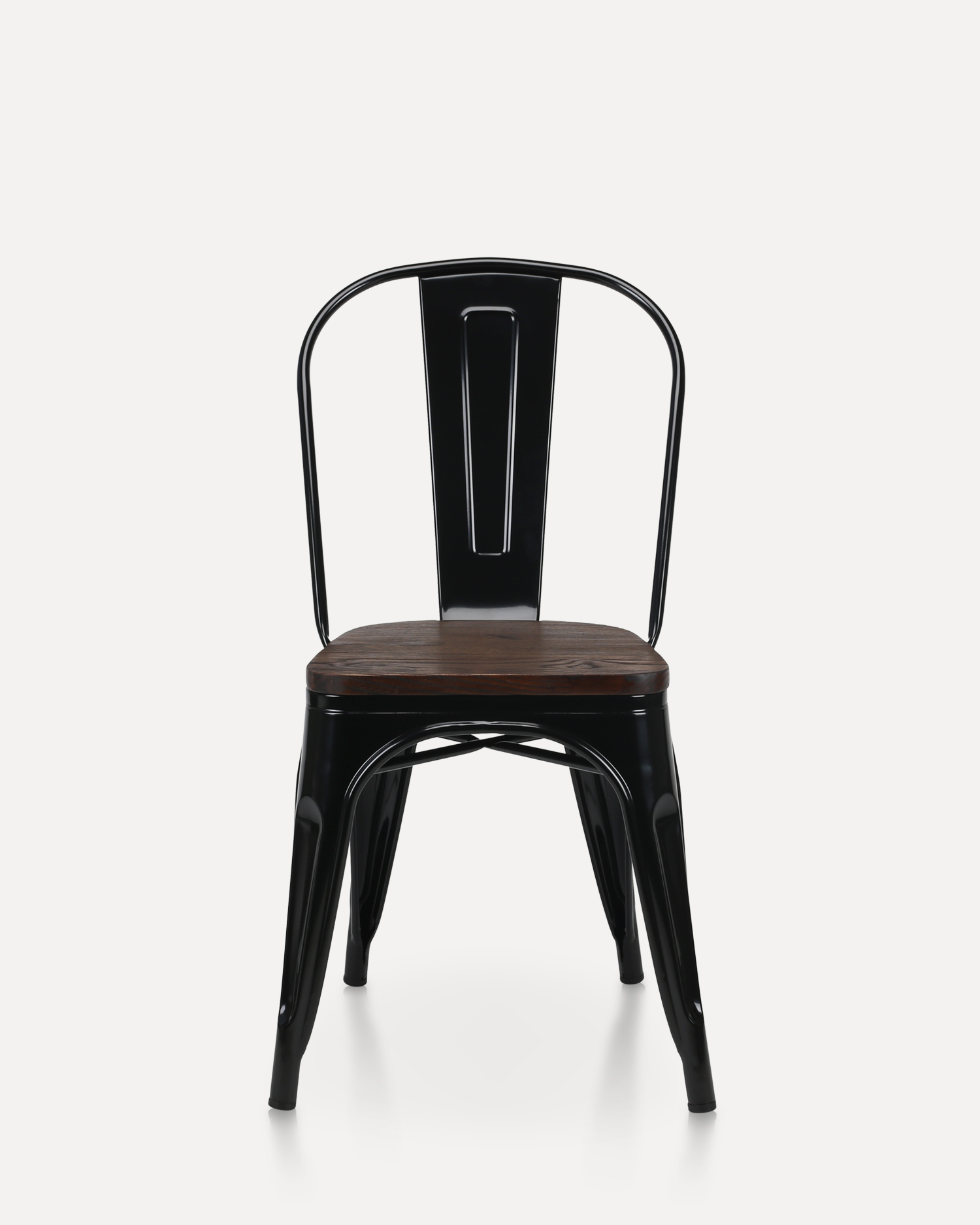 • Denne stolen er et vitnesbyrd om den varige appellen til industriell estetikk, med en elegant svart jernramme som stråler styrke og raffinement. Tilsetningen av et tresete introduserer et varmt, innbydende element som mykner stolens industrielle utseende, og skaper en harmonisk balanse mellom form og funksjon.
