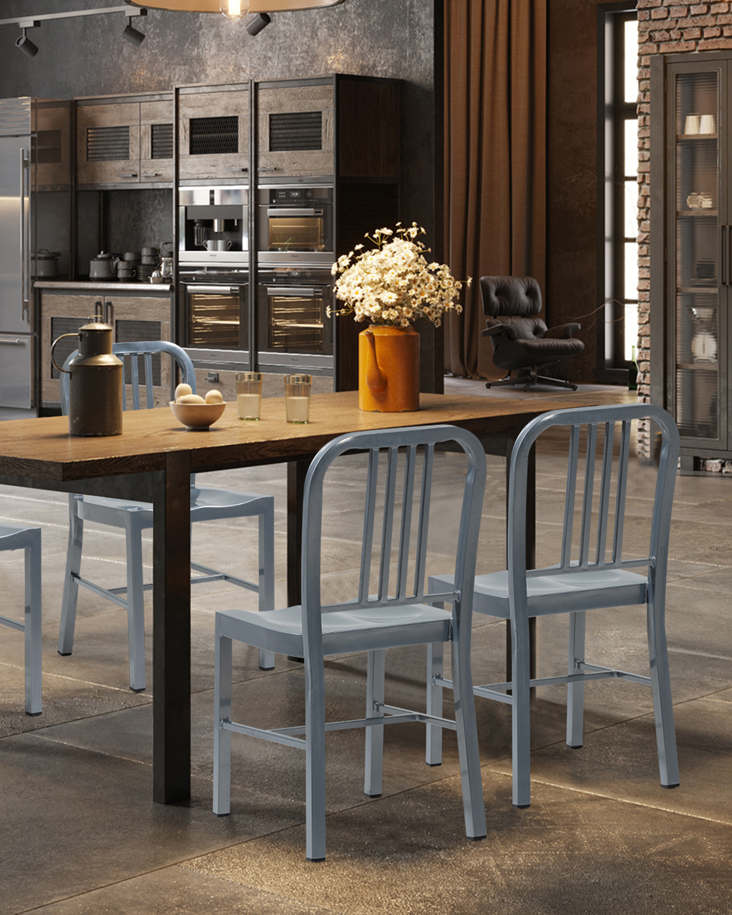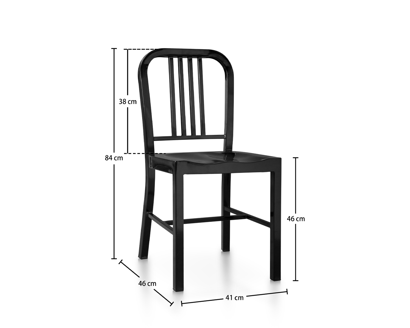 • Invester i den klassiske Navy Iron Chair og ta med et stykke tidløs eleganse inn i hjemmet eller arbeidsområdet ditt.