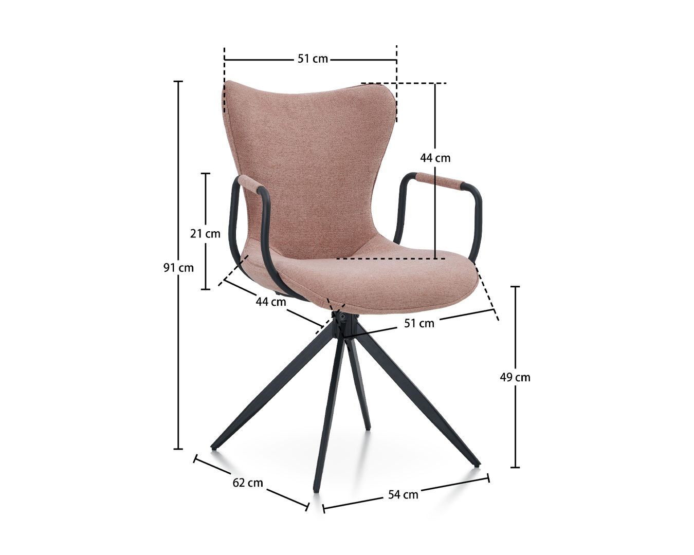 • Innpakket i et luksuriøst rødme rosa stoff, utstråler det en varm og innbydende atmosfære. Stolens design er gjennomtenkt laget for å gi optimal støtte og komfort, noe som gjør det egnet for både daglig bruk og spesielle anledninger.