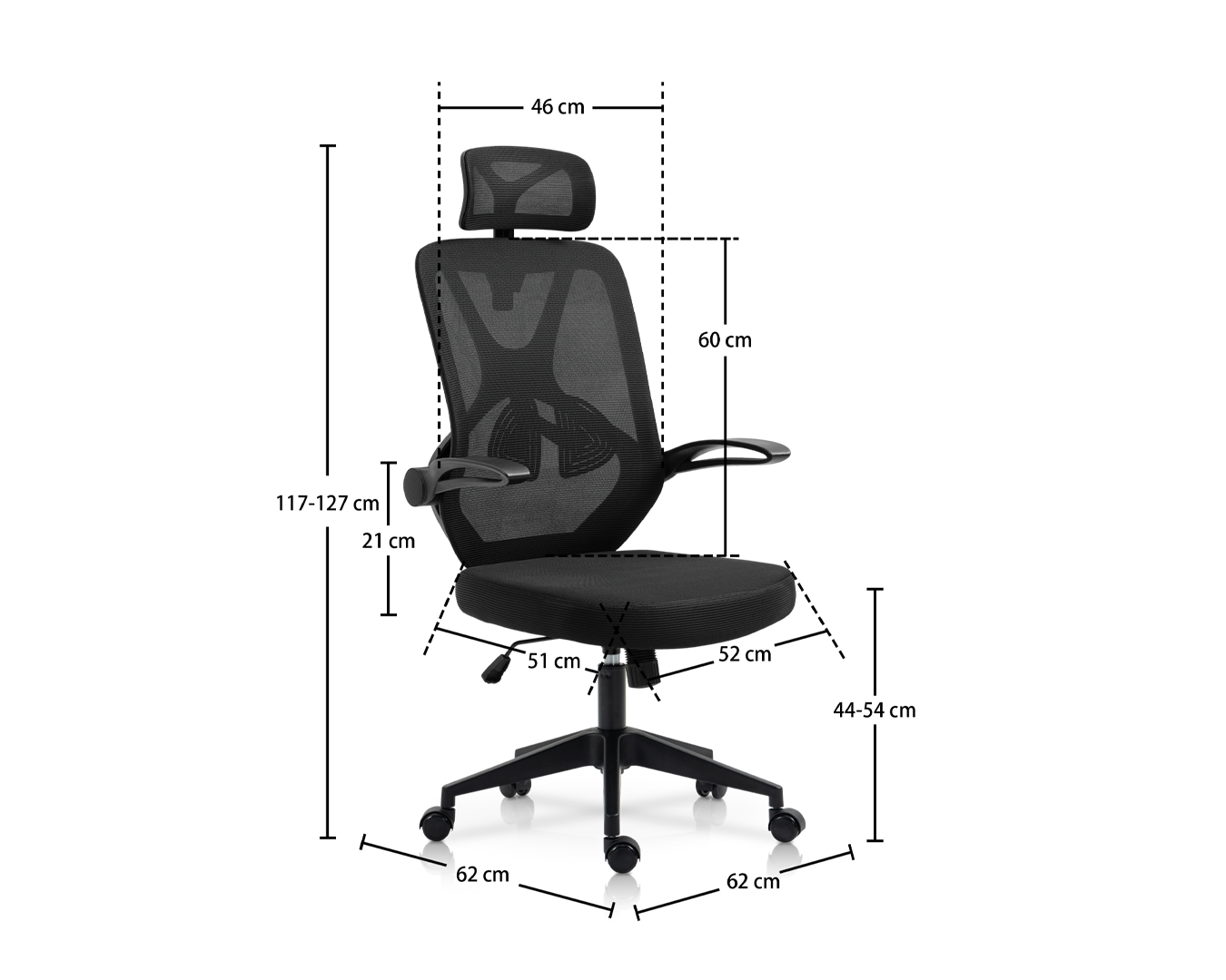 • Ergonomi er kjernen i denne stolens design. Har en elegant svart nettverk som sikrer utmerket pusteevne, og holder deg kjølig og komfortabel gjennom dagen.