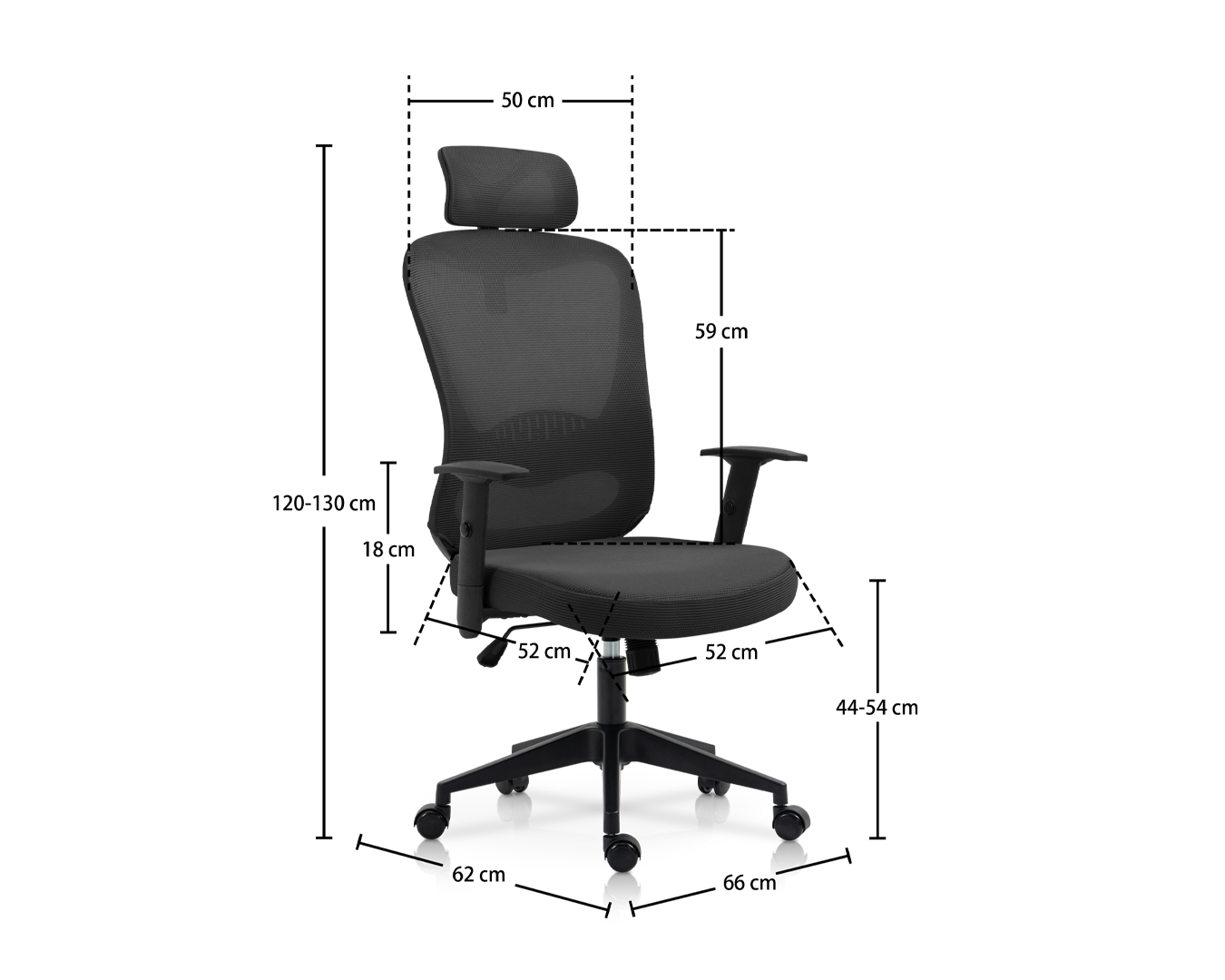 -Størrelse: W66*D62*H120-130 cm / sh: 44-54 cm