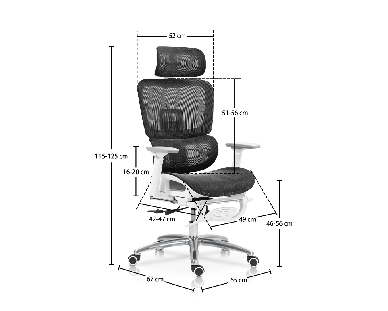 -Størrelse: W65*D67*H115-125cm / sh: 46-56 cm