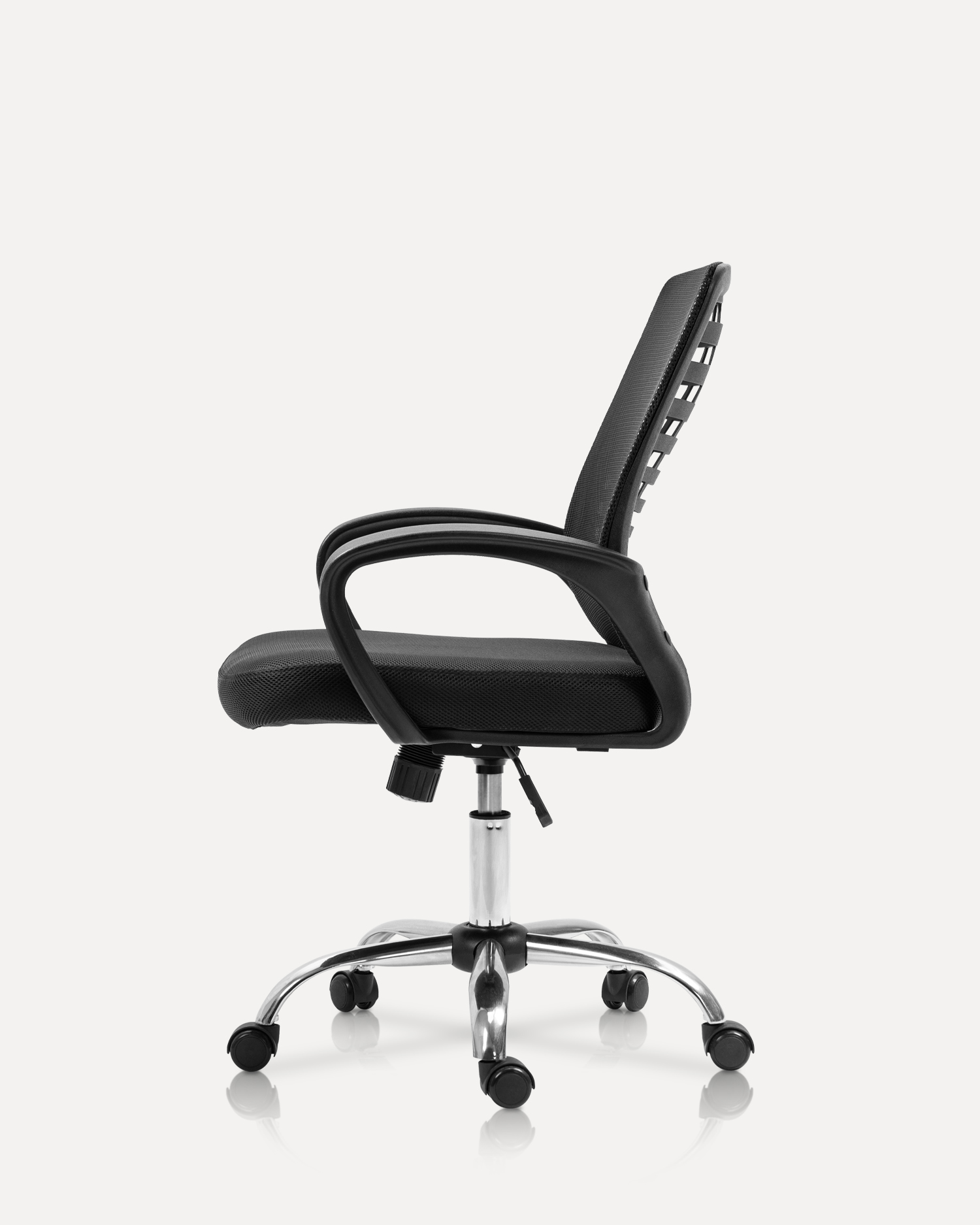 • T Han forkrommet metallbase gir et snev av dristighet og modernitet til ethvert kontorlokaler, noe som gjør denne stolen ikke bare funksjonell, men et uttalelsesstykke.