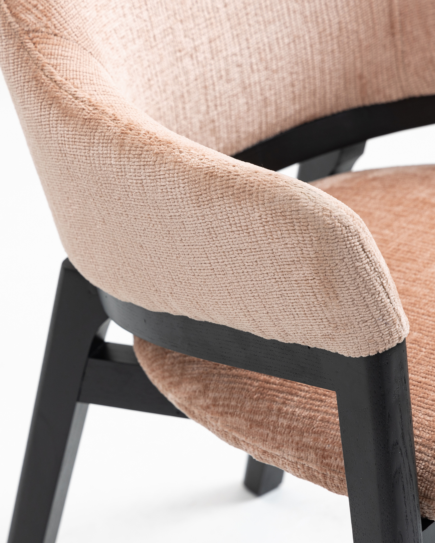 • Hver komponent i denne stolen er omhyggelig laget av dyktige håndverkere, noe som sikrer at den oppfyller de høyeste standarder for kvalitet og holdbarhet. Ash Wood -rammen, ferdig i en elegant svart farge, fremhever materialets naturlige skjønnhet mens du legger til et moderne preg. Det plysj, polstrede setet og ryggstøtten er laget av høykvalitets, mykt stoff som føles innbydende og behagelig.