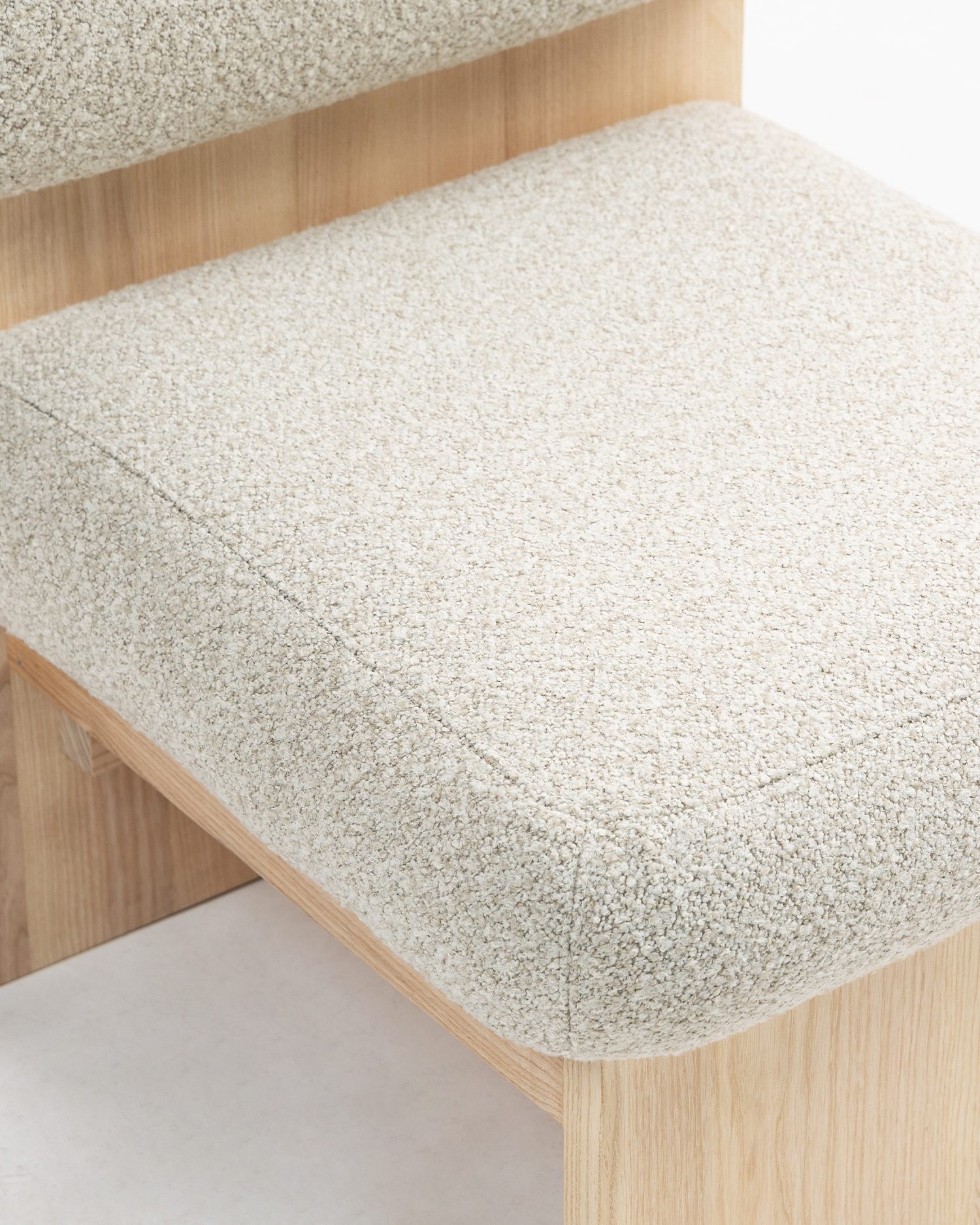 • Denne stolen er designet med komfort i kjernen, og har et sjenerøst polstret sete og ryggstøtte, og omslutter deg i mykhet og støtte. Ash Wood -rammen, kjent for sin holdbarhet og skjønnhet, gir et solid fundament mens han opprettholder et elegant og moderne utseende. Den sylindriske ryggstøtten gir et unikt preg, og tilbyr ergonomisk støtte som stemmer perfekt med kroppens konturer.